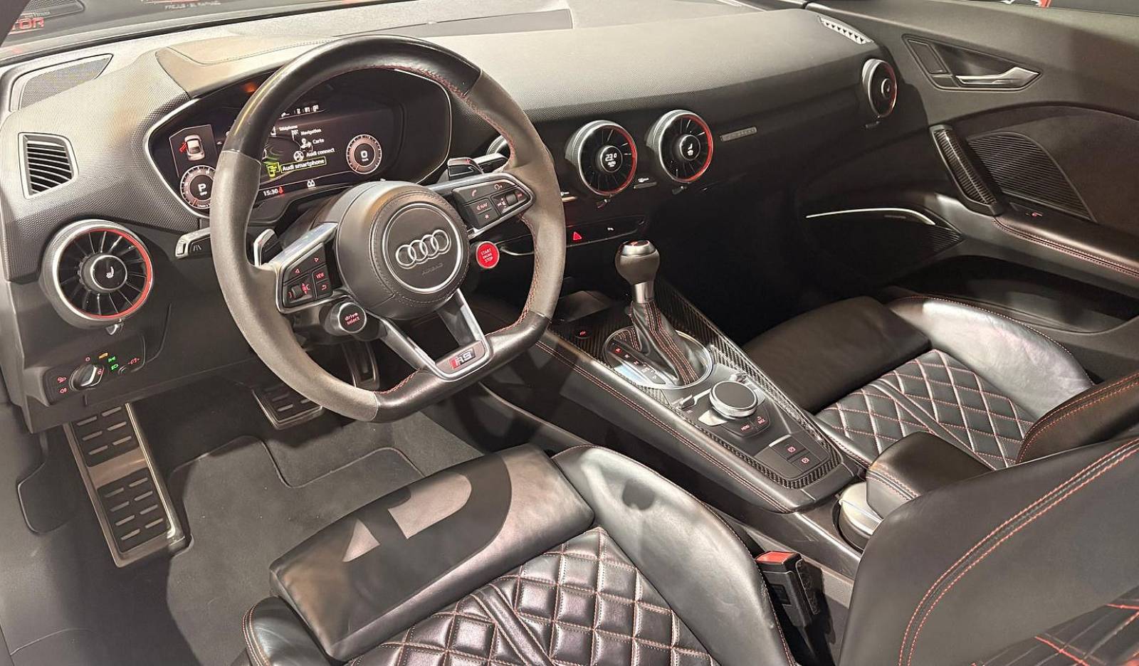 Son style agressif et sportif est sublimé par les jantes alliage 20 pouces, les phares LED, les lignes dynamiques caractéristiques de la TT RS ainsi que les équipements d’aide au stationnement incluant caméra de recul et radars avant et arrière. Les rétroviseurs électriques rabattables et dégivrants apportent également un confort supplémentaire au quotidien.